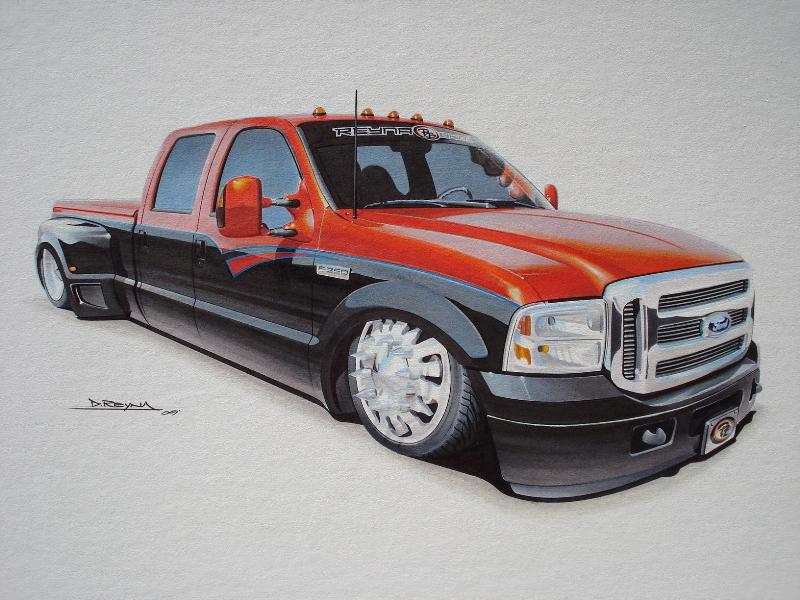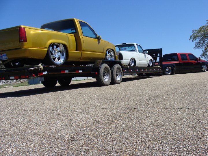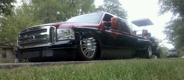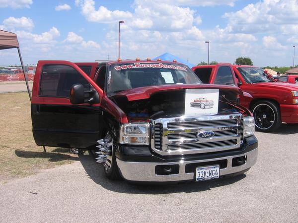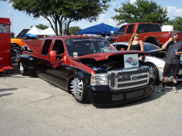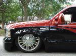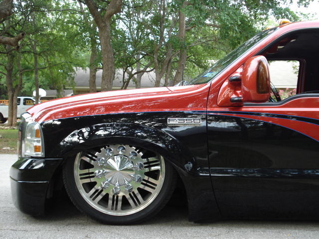 TWO TONE AMBER OVER BLACK. 07 FRONT CLIP. CADILLAC LIGHTS FRENCHED IN THE REAR SHAVED TAILGATE.CUSTOM MADE STEEL ROLLPAN, BIG BOY FENDERS WITH VENTS