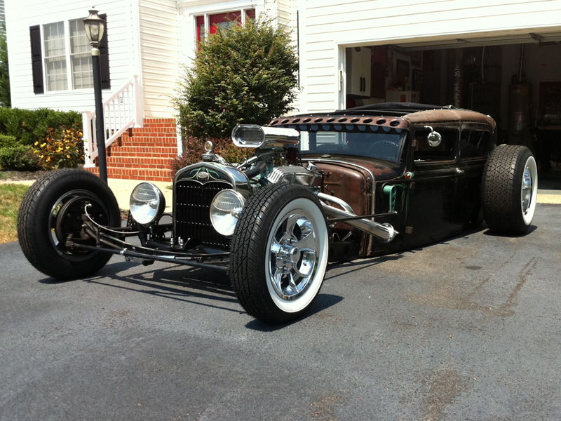 Air ride rear with 4-linked 9" FORD rear with 3:55 gears, Full custom frame front to back, subtle 6" rake from firewall forward, stretched with suicide front end