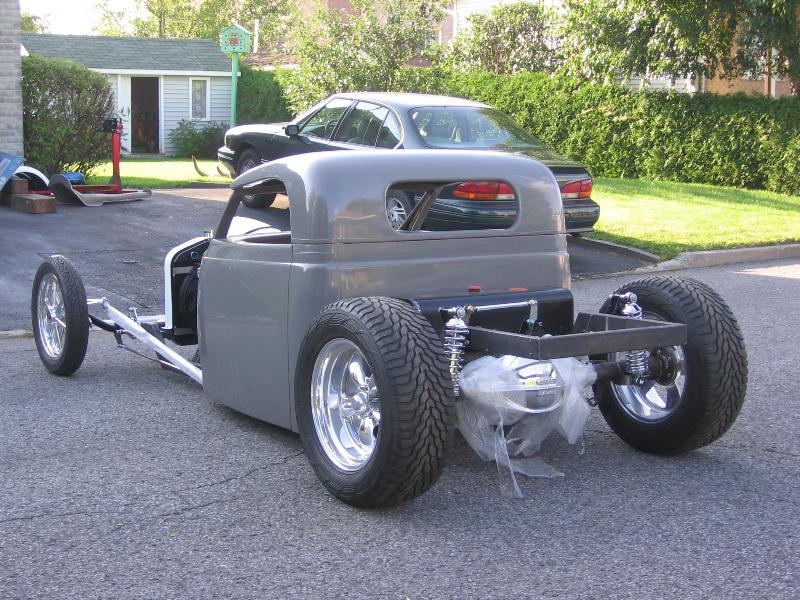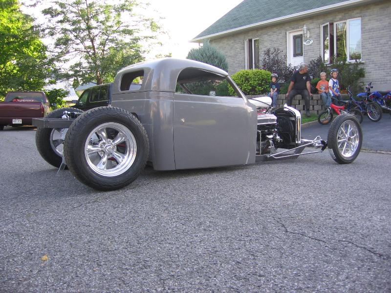 37 ford p-u cab (from OZE rod shop up here in Quebec), with convertible hardtop, 27 T radiator/grill, will have a custom made bed out back... paint to come