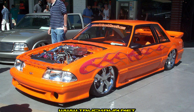 Completly shaved... cobra ground effects. House of Kolor's orange... with spade flames down the side.