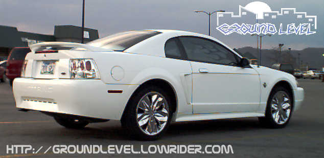 White paint, euro clear tails, flamed pony in front grill, flamed window tint.