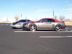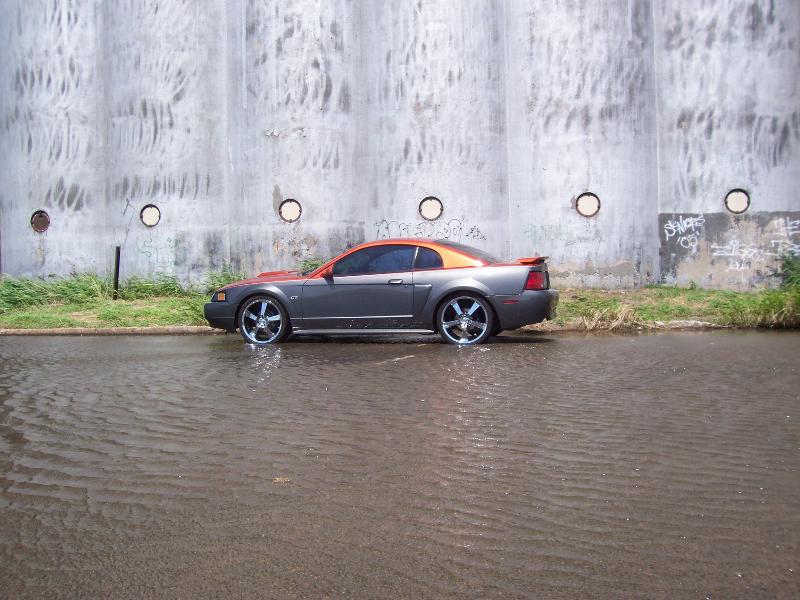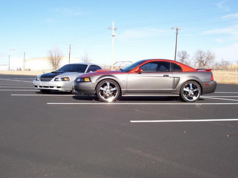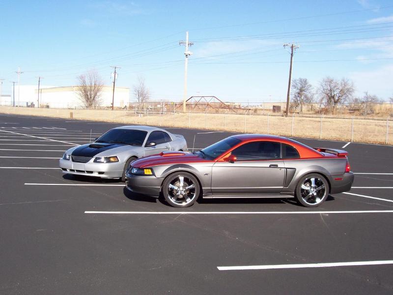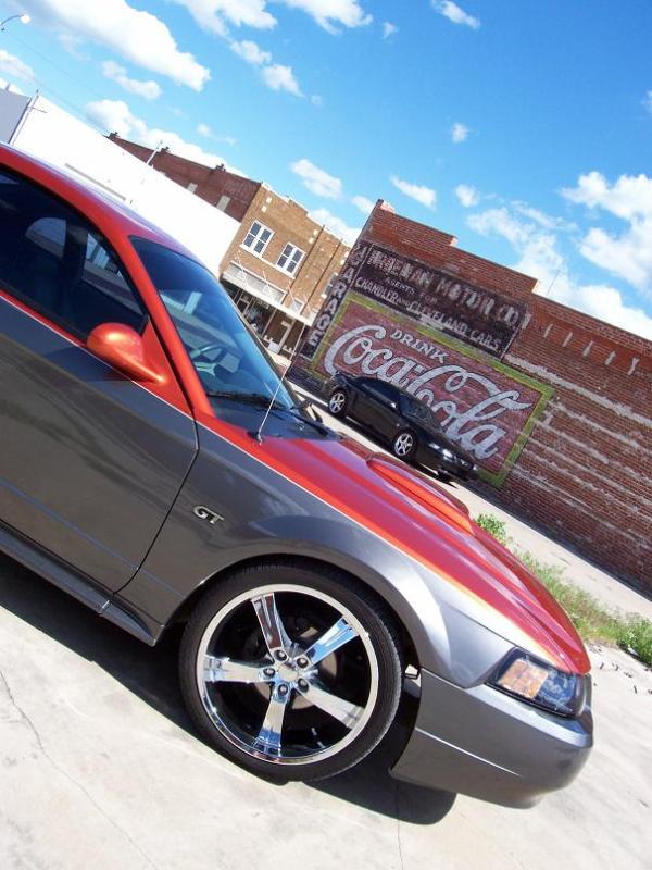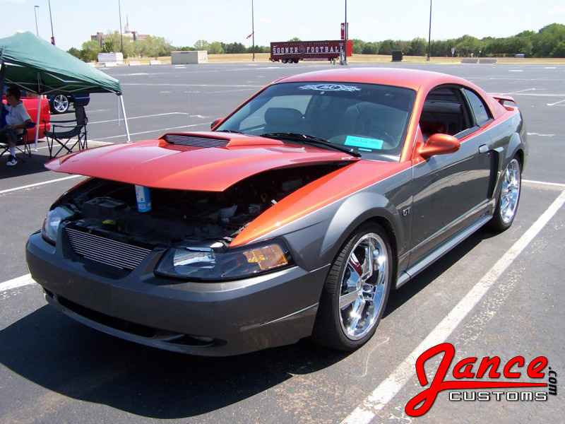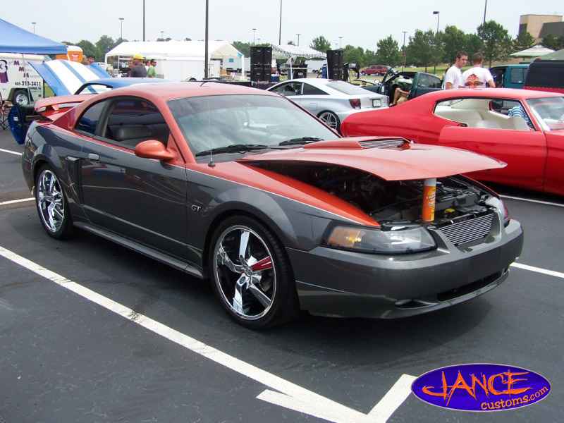 two tone paint mazda orange and ford dark grey mettalic..billet grilles- one in hood scoop the other replaces the stock grile, billet anntena