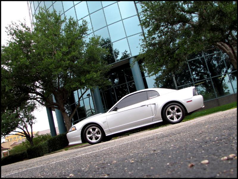 Roush front fascia, Kaenen Cobra R hood, Steeda hood pins, shortie antenna, shaved trunk holes, shaved 3rd brake light, shaved trunk key hole, 05 GT emblems, black out taillight tint