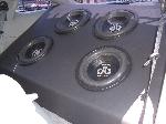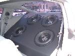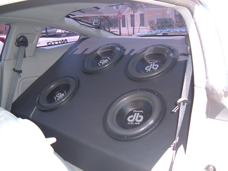 panasonic 7500u indash touch screen dvd player, all db DRIVE for the system, 4 db platinum 1500 watt 12's, 2 1200.1 db platinum mono amp, all db platinum highs run off a db platinum 120.4, db drive 8 inch door subs run off a db drive 120.2, custom built box for 4 12's where the back seat use to be