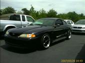 factory black, roush sides and rear, 04 gt hood scoop, o4 mach 1 chin spoiler, relocated and lowered rear wing,
