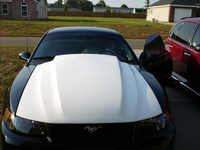 Mach I Grill Delete, Bullitt Fuel Door, shorty antenna, 4 1/2" Kaenen cowl hood, shaved rear decklid