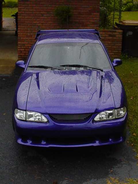 Blue Sapphire color. Full Saleen kit/s351 composite hood. SR wing and S281 wing(not yet painted!) Side scoops...shaved antenna and all markings. Billet grill. Catz XLD lights.