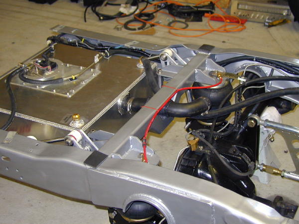 custom rear ladder bar with bags and a pivot shock setup