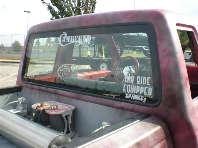 CLEAR REAR WINDOWS SWAP, ONE-OFF LASER CUT SPIDERWEB GRILL, CLEAR FRONT CORNER LENSES, STREET SCENE MIRRORS, EDGE FRONT BUMPER WITH LICENSE PLATE HOLES SHAVED, EDGE VALANCE AND FOG LIGHTS, FLARESIDE BED SWAP, SHAVED AND RELOCATED GAS DOOR, SHAVED TAIL LIGHTS WITH LEDs UNDER THE TAILGATE,SHAVED COWL, SHAVED FENDERS, RAISED BED FLOOR 8.5", SHAVED AND RELOCATED TAILGATE HANDLE, SHAVED TAILGATE EMBLEM, ONE OFF BILLET WEBBED STEPSIDE STEPS, 35X35 STREETBEAT CANAVAS RAGTOP, SHAVED FENDERS, SHAVED DOOR HANDLES, SUICIDE DOORS, SHAVED CAB SEAMS, SHAVED CAB WALL, 60 CHEVY TRUCK FRONT BUMPER NARROWED 15" FLIPPED AND SHAPED TO BEDSIDES, REPAINTED AT WILSON AUTO BODY IN VAN BUREN, AR.