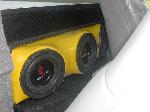 3-8" Digital audio subs built in custom fiberglass box by Eric at Low Budget Audio,1-MTX 425Watt amp,Sony Xplode mids and highs
