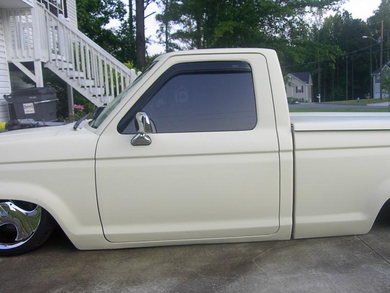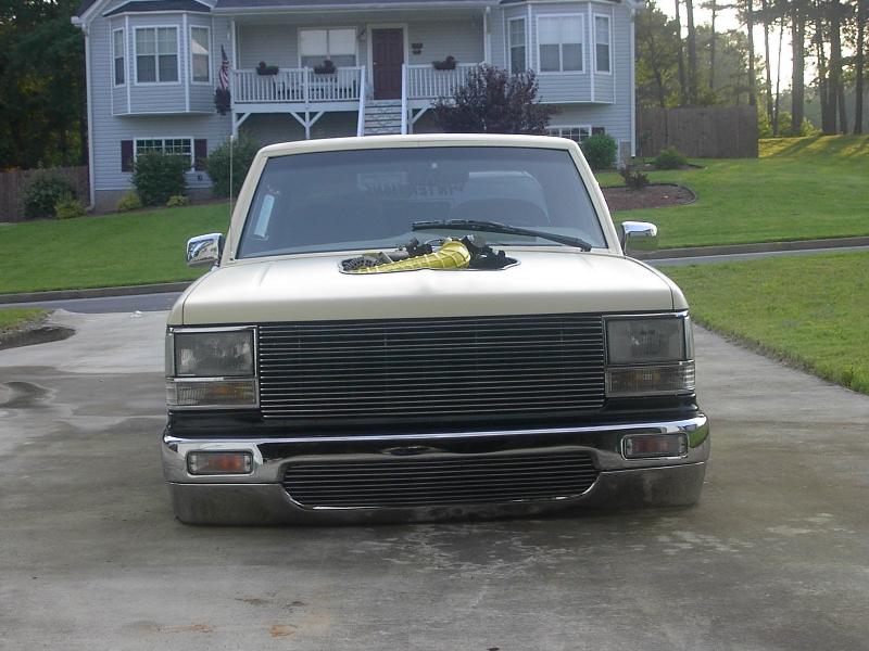 shaved:emblems,door handles,tailgate handle, keyholes,rear cargo light,tailights,stake holes,shaved cowl,cowl molded to fenders,fenders molded to rockers,radiused door corners,shaved rain gutters,shaved rear end with 8" l.e.d. tailights.polished billet grille,billet antenna,front clear lights,chrome Toyota front bumper & valance with billet insert,chrome Toyota mirrors,sittin in tan primer.