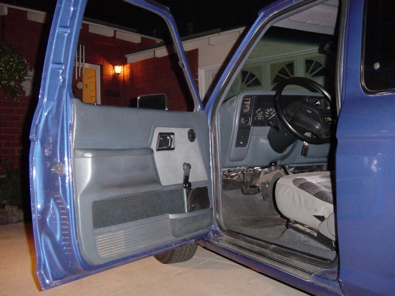 Caddilac tail lights, shaved tailgate, billet grill with caddy emblem, custom electric blue pearl paint.