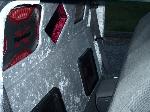 Interior is covered with silver/red velvet to match the vehicle's exterior.