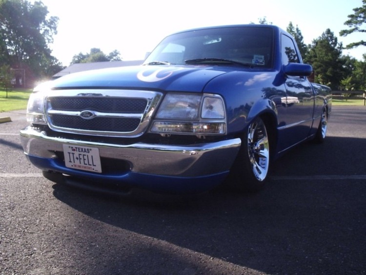 Shaved: Door handles, emblems, stake pockets, antenna, tail lights, 3rd brake light, top body line, full skin combo w/LED tail lights, LED 3rd brake light, License Box frenched in, speed grille, sport mirrors, fiberglass bed cover, sunroof, spray in bed liner. Paint: Intense Blue w/ HOK Blue Ice pearl, Silver Tribal on the hood lined out in orange. NEW PICS COMING SOON!