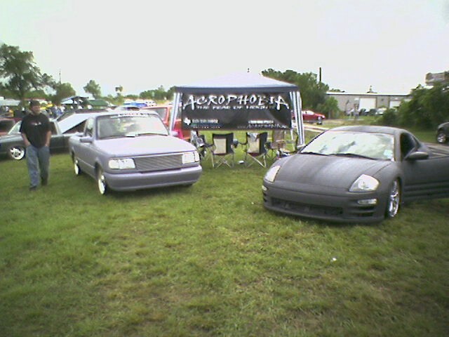 white and magenta custom paint job,laying frame soon,bagged at 4 corners on slambags , 2 link in the rear ,khaki and white vinyl and fiberglass interior,a few billet pieces here and there, 4 8" jl audio w3's blown through from bed, checkmate flushmount tonneau cover, prospecting for AcrophobiA now, maybe upgrade to 20s