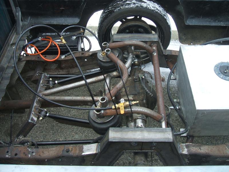 Front: slam re-6's on DJM dream beams. Rear: slam re-7's. 5 gal tank, 8 1/2" blitzluft valves, 1/2" line, Dual viair 480c compressors