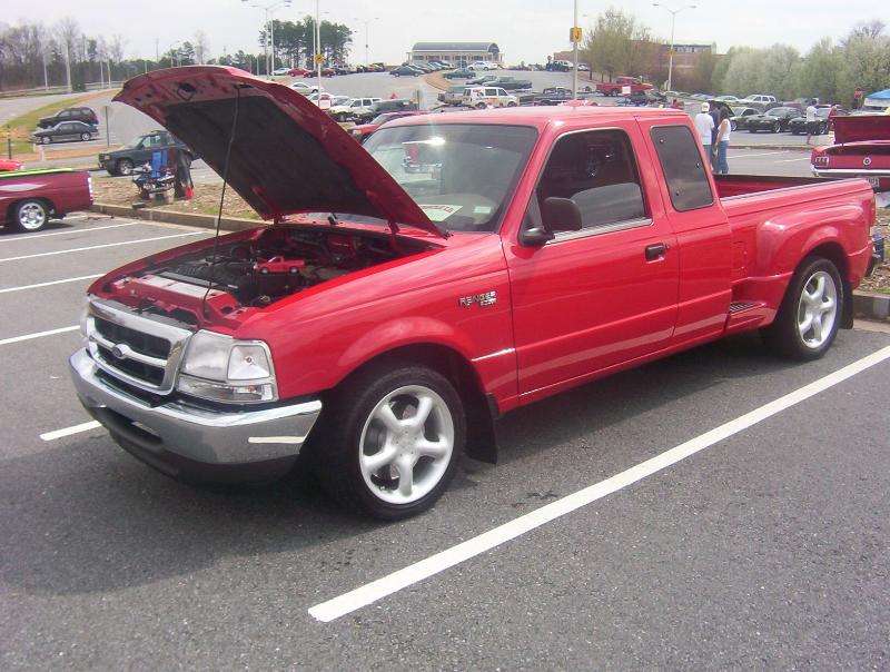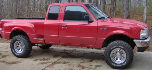 Bright red stepside x-cab