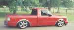 trim painted to match exterior color (red), reverse indiglo gauges, billet pedals with red accents, billet shift knob with red leather top