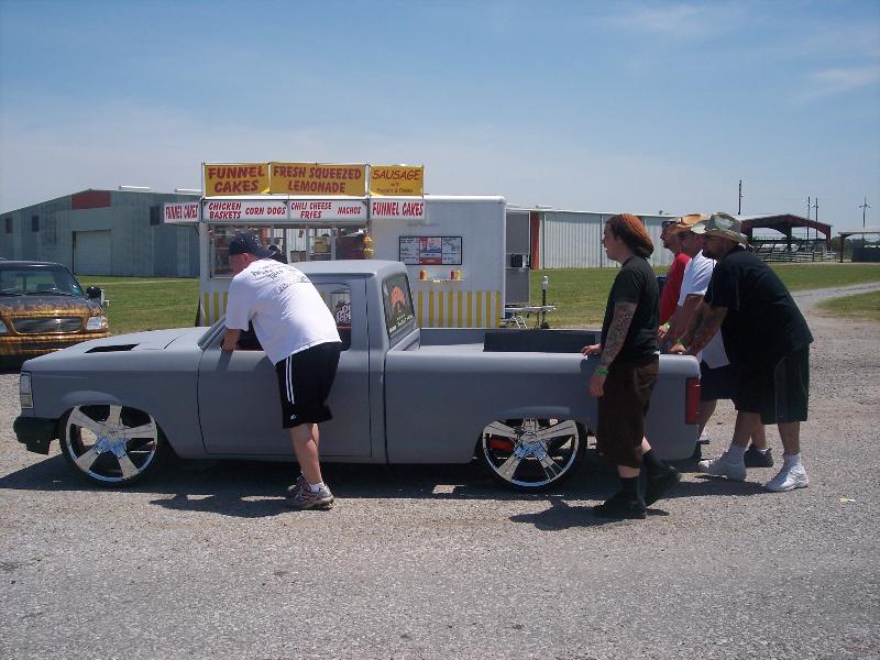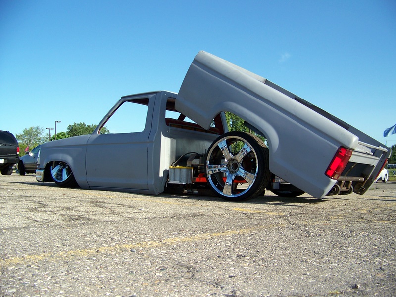 Shaved.... doors, cowl, gas door , full skin, 3rd brake, and other crap. Probably some stock tails. 2 tone paint scheme is set. Tilt bed.