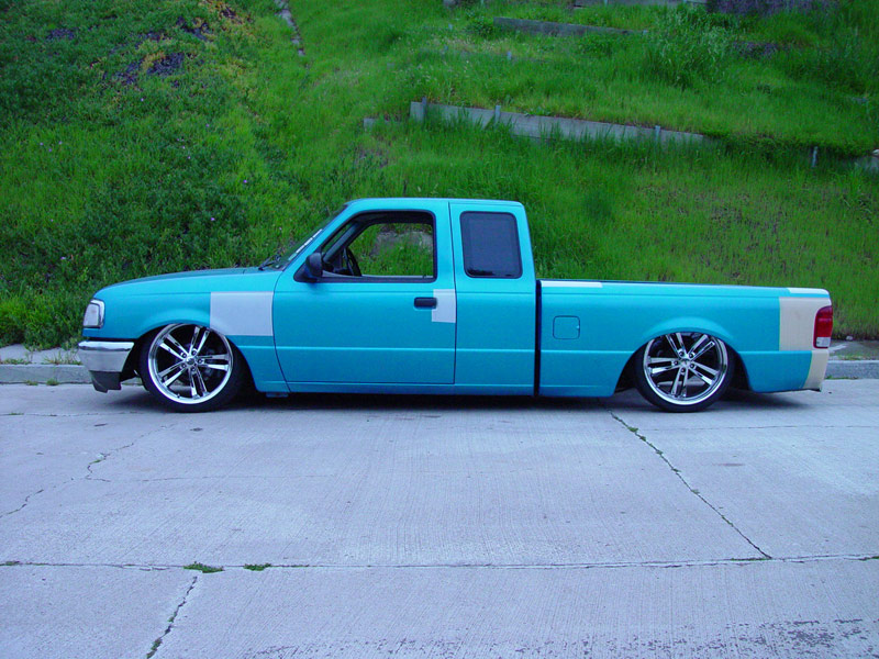 Shaved keyholes, stakeholes, antennae, emblems, and tailgate handle. Rear roll pan and the emblem has been frenched into the tailgate.