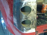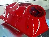 3 Kicker Comp VR Subs in a Custom Fiberglass Speaker Enclosure painted Red Pushed by a Kicker 500.2 Amp