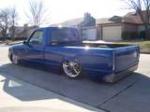 Stock floor body dropped 3", slams on tubular mounts up front,cantilever, full tubular backhalf with tri 4 link,dual viair 380s, 1/2 valves, wheels tubs front and rear.