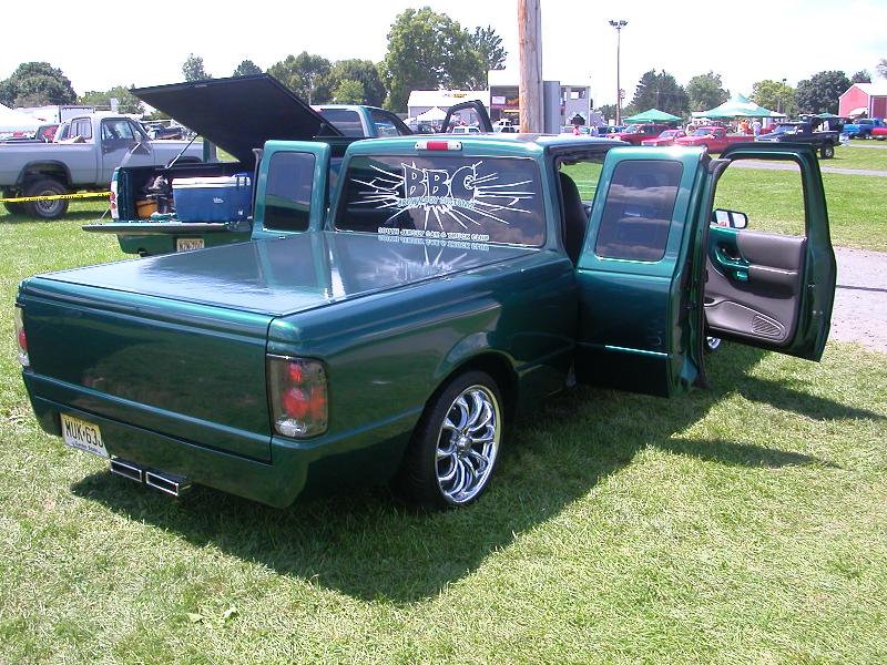 Shaved doors, gas door, emblems, stake holes, mud flap holes welded in roll pan, 2003 4x4 airdam, 2003 2x4 chrome bumper, with t-rex grills, clear lights front and back.