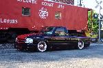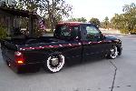 Full air ride suspension, Slam bags all the way with E valves. Custom triangulated 4-link in the rear.