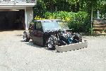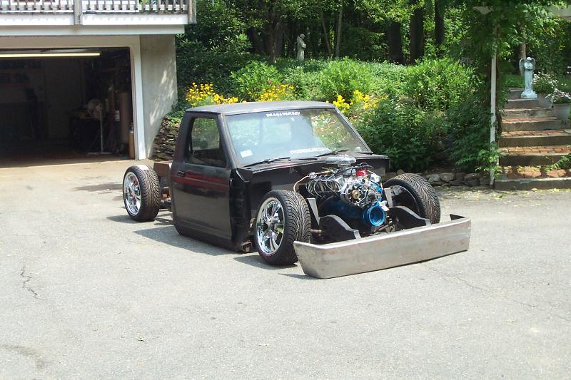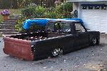 triangulated 4 link, custom frame,one off front clip,bellteck yota spindles, 3 1/2 inch body drop, slambags,2 viair 400,1/2 valves,2 5 gallon tank.
