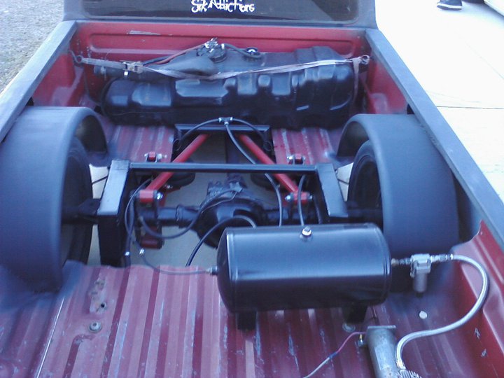 Fully Bagged on 18s 2600s up front 3in. drop I-beams raised tranny crossmember. Back is bag on bar RE8s 2 444 compressors and a 5 gallon tank 1/2 valves and air line.