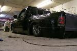 shaved doors , tailgait handle and emblems, cowl hood, billet grill, splash bed with molded roll pan, black tails