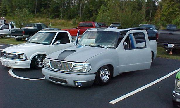 whole truck has been body dropped 4 inches, works shaved all emblems, door handes, '95 civic handles relocated to rear of cab, third brake light,cab seams,mirrors, locks, body lines, tailgate handle, gas door, tie down holes in bed, taillights, cowl panel. frenched in bullet shaped taillights, stock rear bumper adjusted to fit body better, clear corners, hid look alike headlights, billet grill, chrome wiper arms & hood prop.