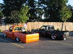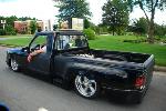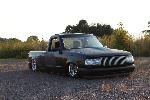 Black, with black primer spots,shaved tailgate handle, shaved third brake light, shaved door handles, shaved wiper cowl, shaved gas door, eclipse hood bubble turned around backwards, diamond clear corners and headlights with 8K HID's/ 2008 tail's