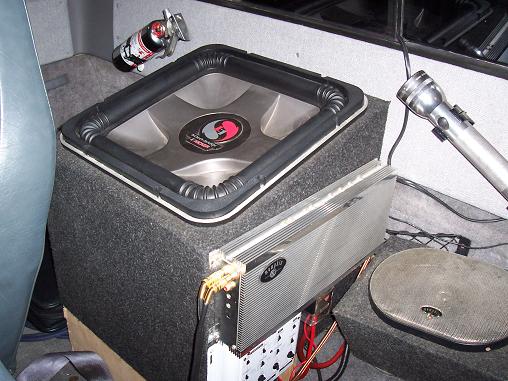 Panasonic day/night 65wx4 head unit, Memphis 3 1/4" 2-way door speakers, Memphis 6"x9" 2-way speakers in the back, 4 gauge power & ground wire running an 1,100 watt memphis amplifier which is running a 15" square L7 Kicker Solo-Baric.