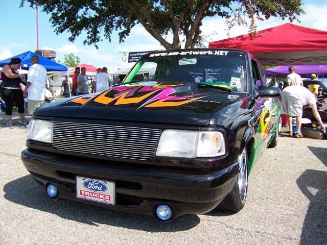 shaved, custom graphics,cowl hood, roll pan, billet grille, billet ant., crystal clear lights and euro tails.