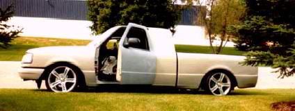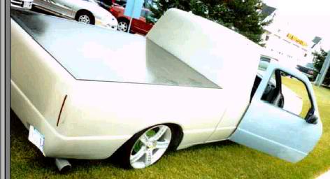IF it could be shaved it was.. Upper body line, rain gutters, third brake light, handles, emblems, Supercab windows, welded bed closed, 10 inch taillights in stock location, Lots of primer full tilt front end, possible a front end swap
