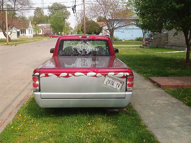Shaved door handles, tailgate,embilems, steak pocket holes, Frenched in licenceplate, 2-tone candy paint