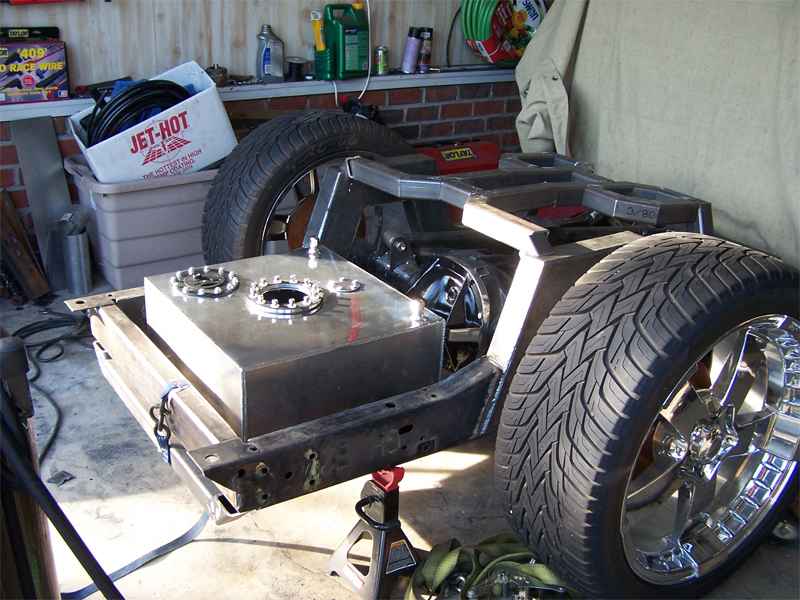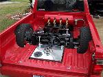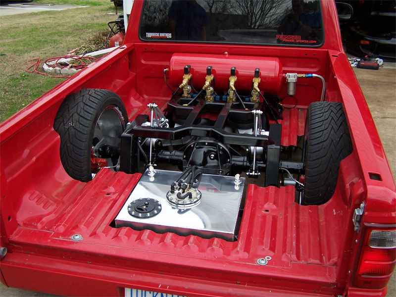 Slam RE-6's & RE-7's , djm arms, tri 4-link w/ bags on upper bars, 5" narrowed rear w/ mustang disc brakes, chrome Carrera/QA1 cantilevered rear shocks w/heims, GC 250 valves (1/2 fill, 3/8 dump), 1/2 line, color matched 8 gal tank, york 210 EDC