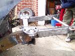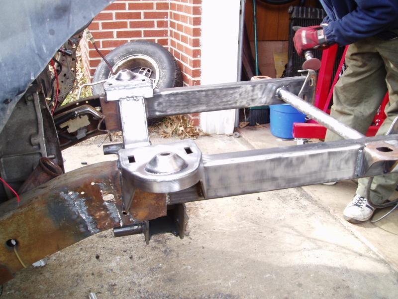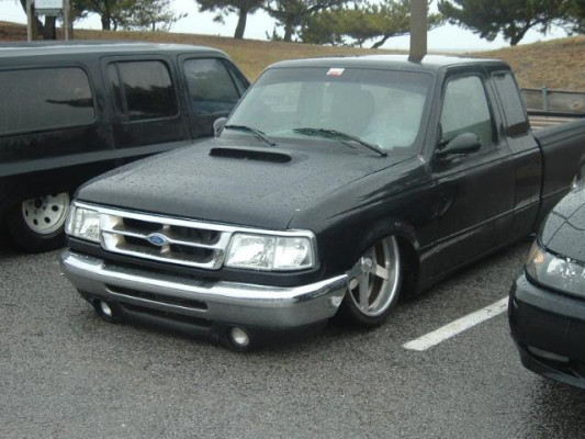Bagged [of course]. Full custom box tube subframe and front frame section. Front suspension: Mustang II IFS with polished stainless control arms, airlift 2b6 bags. Rear suspension: custom triangulated 4-link, f-9000 sleeve bags