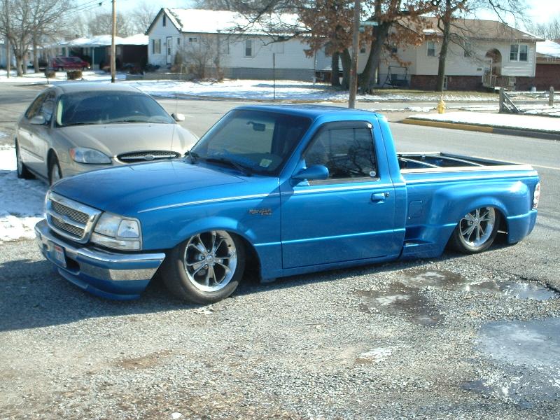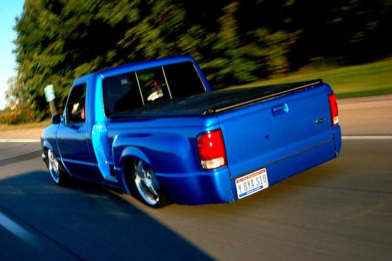 shaved third brake light, handles, locks, front emblems. Edge hood, color matched bumper pads and lower valance. Horribly ugly clear outs, and an incredibly mangled rollpan.