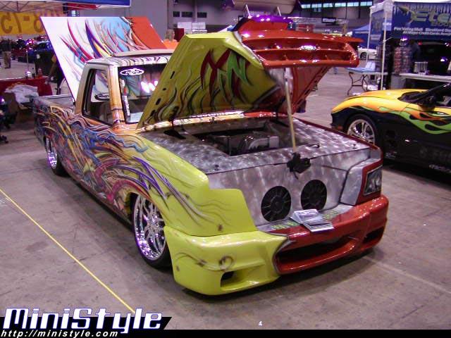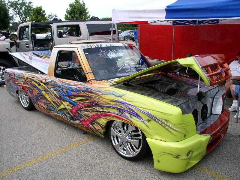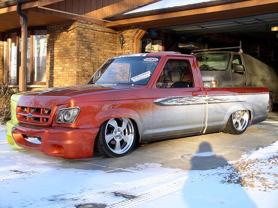 Shaved cowl and frontend off 2001 ranger rearend shaved,gas door,antenna,and tailgate handle.50 color abstract painted by customshop in ill.custom tonneau cover also made by cs.