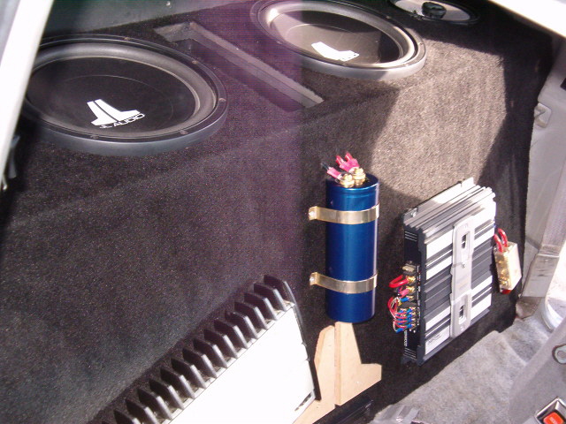 Alpine IVA-D300 7" Indash TV/CD/DVD player, JL 500/1 sub amp, kenwood 320watt 4chl mid amp, kenwood excelon 5x7s, pioneer 5x7s, rockford FNX tweeters, (2) JLw3v2 12" subs in custom made box, Ixos 1 farad cap, and a PS2 in the dash.