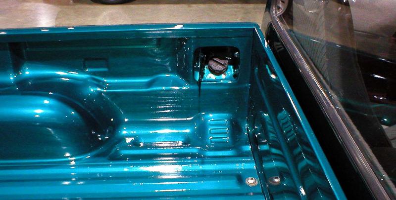 shaved emblems, door handles, tailights, 3rd brake light, antenna, talgate handle, bed stake holes, gas door and relocated to inside bed, cab seam lines. Added 98 smooth front bumber as well as 94 Splash grill. Molded in rollpan.