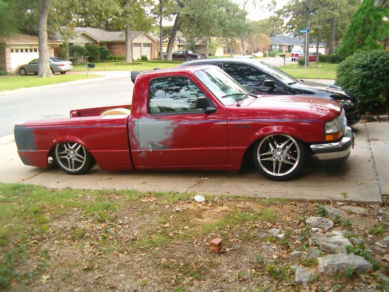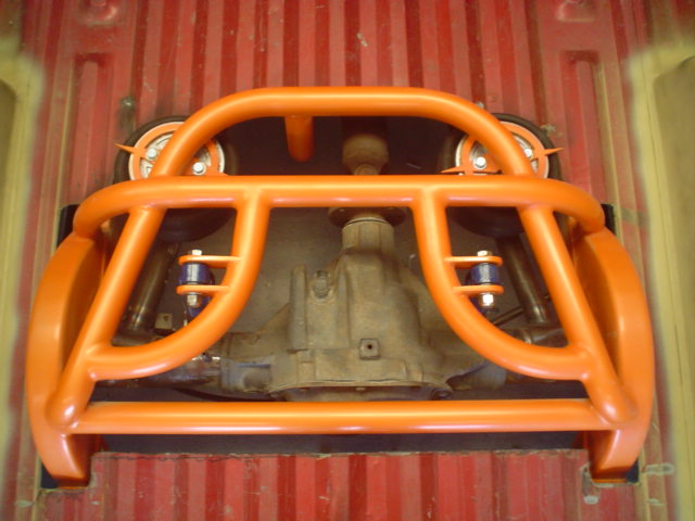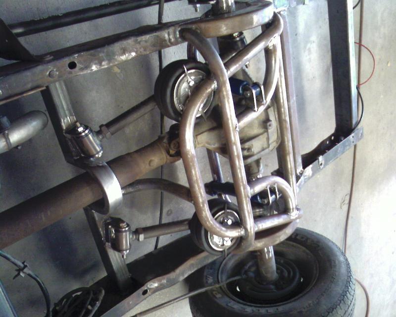 Slams all the way around 2500 up front 2600 in the back All fabrication done by Mike farmer at Insane Designs in Ennis TX. Custom tubing across the notch with the lines ran through the tubing so no lines show. Also all wiring and lines run through the notch so nothing is seen. Frame rails boxed in with a four link.