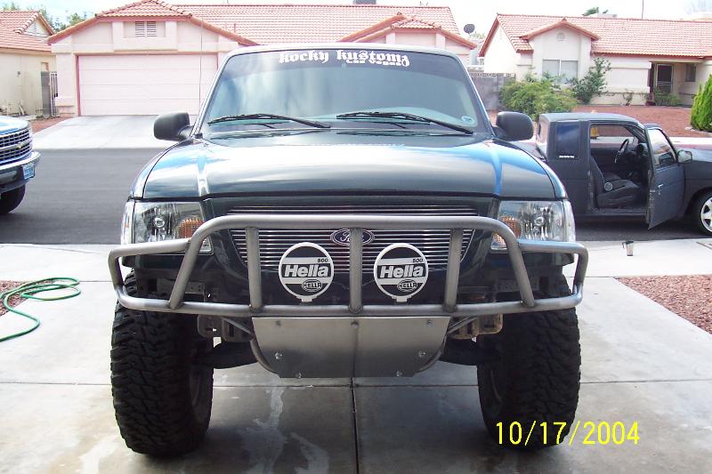 spare tire mount,powder coated front and rear prerunner bars, billet grille, clear corners, cut rear fenders, 2 6in hella fog lamps