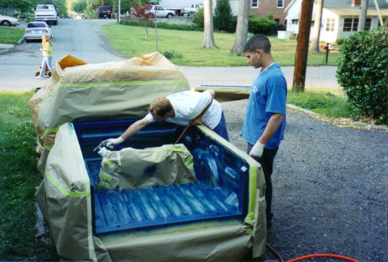 this truck was rear ended on the way home from a show, by a woman looking in her back seat. she never hit the brakes.