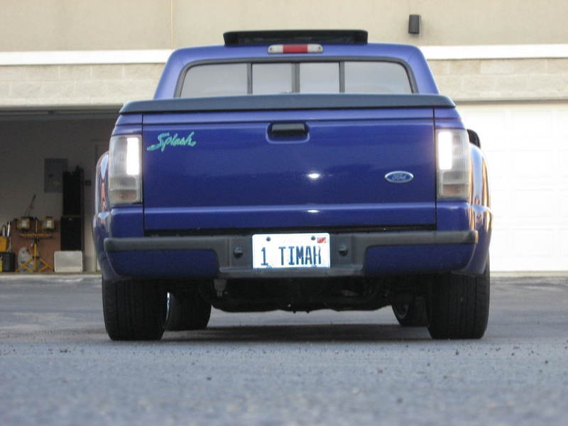 Ford Factory Bright Metalic Sapphire Blue color code JA, street scene front valence, underdog line of fire led, 8000k tenon hid's and fog lights, apc white rear tails, projection headlights and rocking the RPS window sticker, and now the cowl hood is on!!