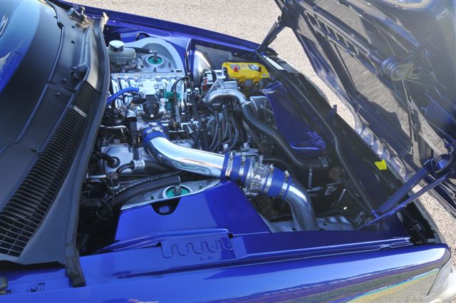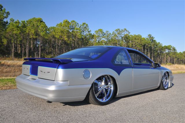 Basecoat is Ford SVT Blue over House of Kolor Orion Silver trimmed in Bahama Green