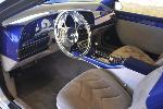 Fully custom blue tweed interior including door panels, window pillars, kick panels, kick plates, custom rear panels, package tray, and headliner