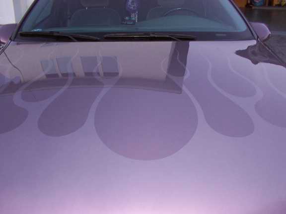 Painted Rosemist with ghost flames. Painted doorhandles. 97 headlight conversion with clear corner lights and purple Xenon headlight bulbs.